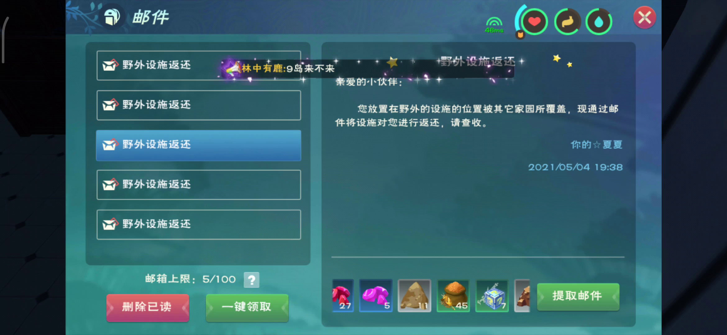 这就是传说中“砌墙的石头,后来者居上”?我这家园在这里都有近一个月了!一上游戏突然收到一堆邮件!后来的就能这样卡bug嘛?这是什么体验啊!请官方给我一个完美的解释@创造与魔法!