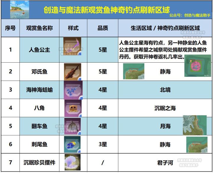 创造与魔法新观赏鱼美人鱼邓氏鱼等钓点