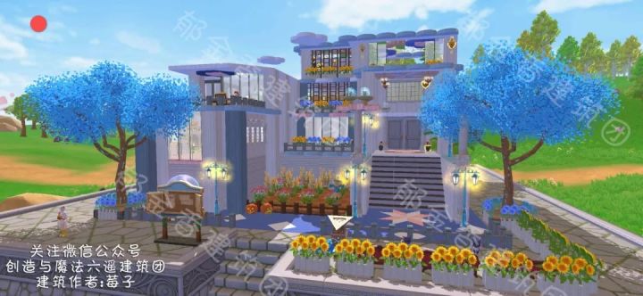 带你们大致的参观一下,左右两边都是对称的,非常适合混战服人多的家园。其实顶层往上还能再改一层,但是我没盖,只是在楼梯口那里弄了个顶