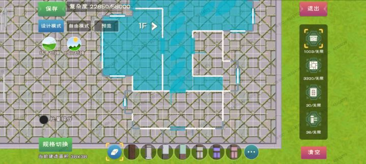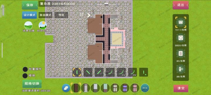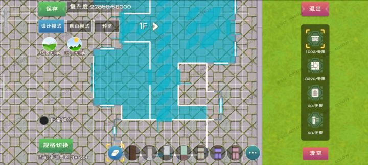 本来想把地板也铺好的结果复杂度不够用了,只能凑活拼了下地板