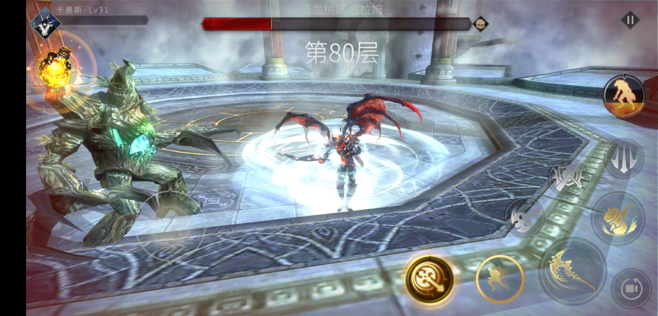 人不能用轮盘移动,只有技能能移动,boss打不到人。结算还有东西。