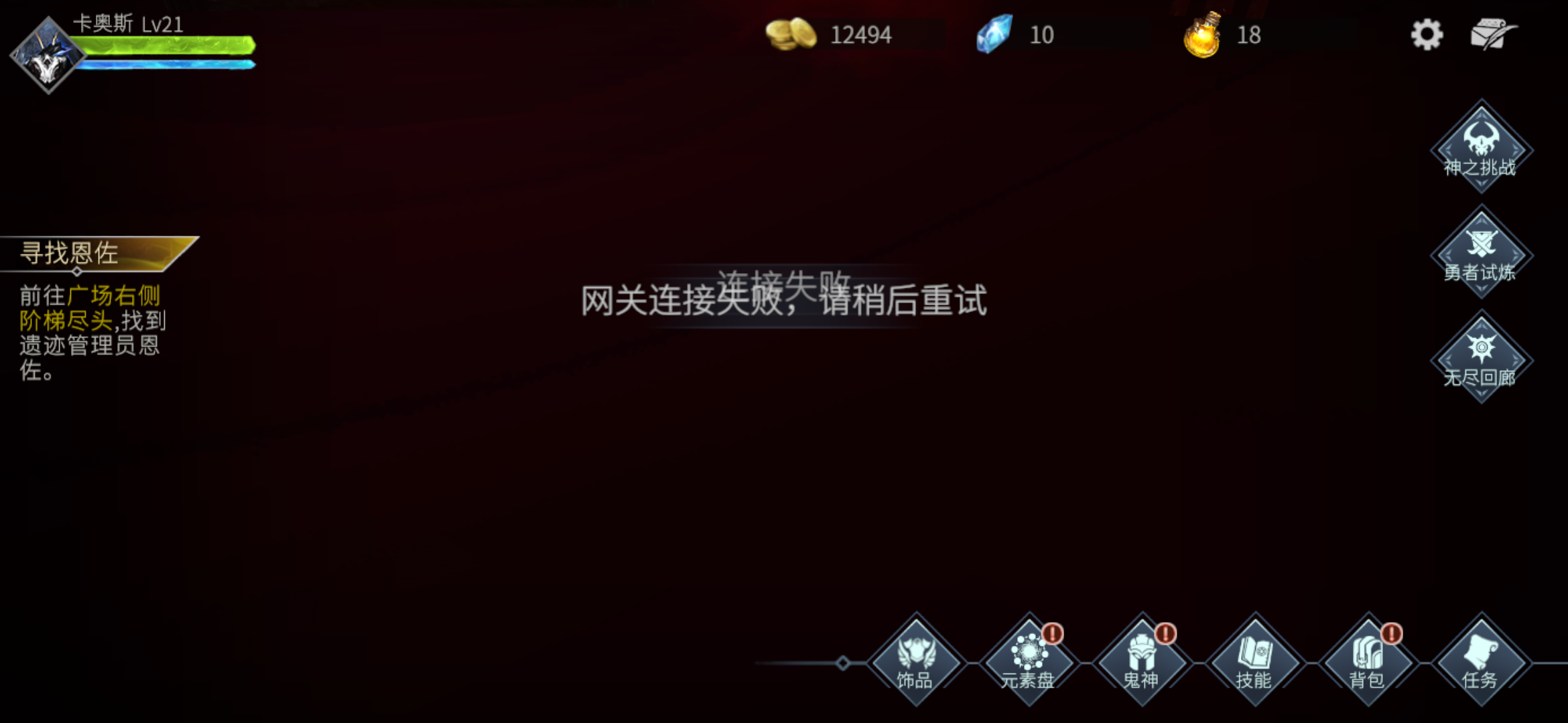 点击神之挑战就提示我网关连接失败,请问要怎么处理?