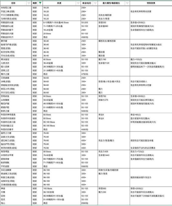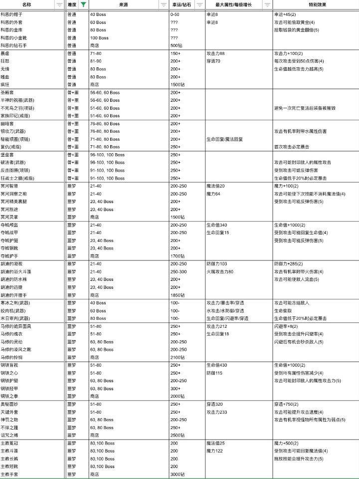 发个装备掉落图备忘(都是在帖子里摸的 不知道来源 如果侵权抱歉且可以联系我删除)