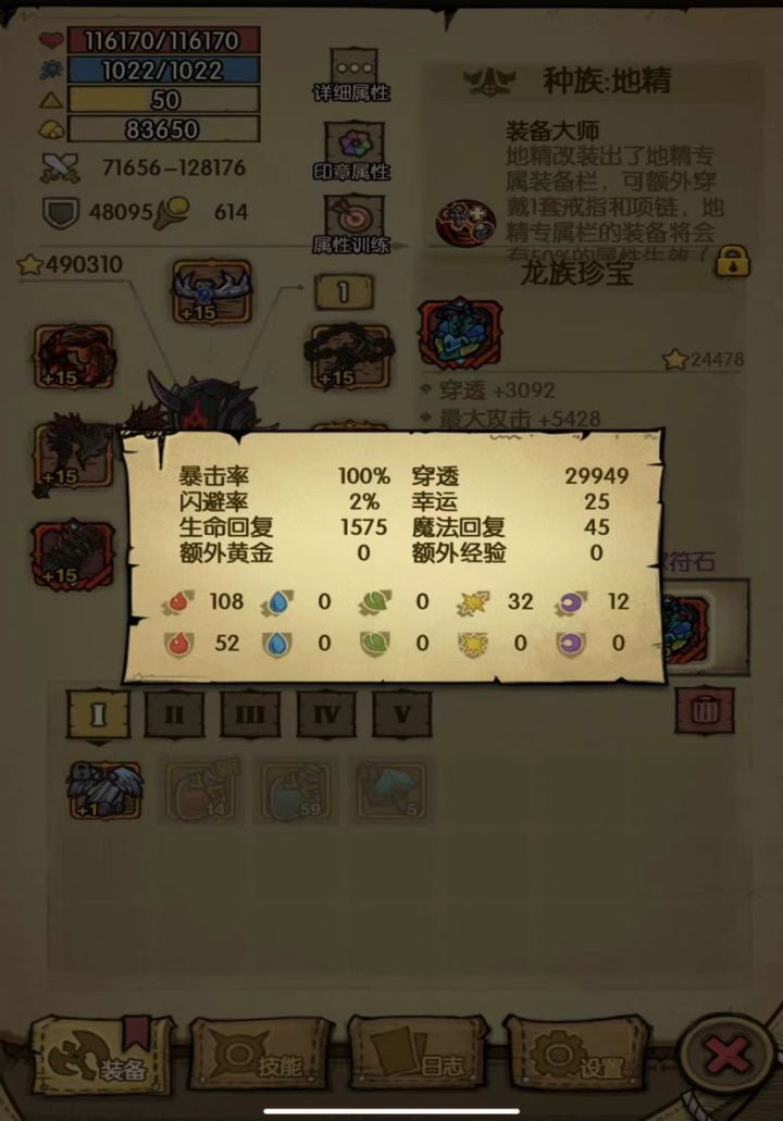 虽然不成熟,但是还是记录一下。人物默认小浣熊。众所周知,双修就是魔武双修,英灵的出现,还有血量越低攻击越高的套装,让玩法出现了高收益的可能,就是利用英灵代替百暴,同时一直触发套装高攻击特效。该玩法主要目的就是较低的属性要求达到打过关的效果。该玩法的毕业要求较低,也吃一点卡组。(如果是氪金号有章纹,或者有地精,卡组差不多也行。)毕业装:裂缝40层后的高基础装备,合适词条。词条词条方面,9