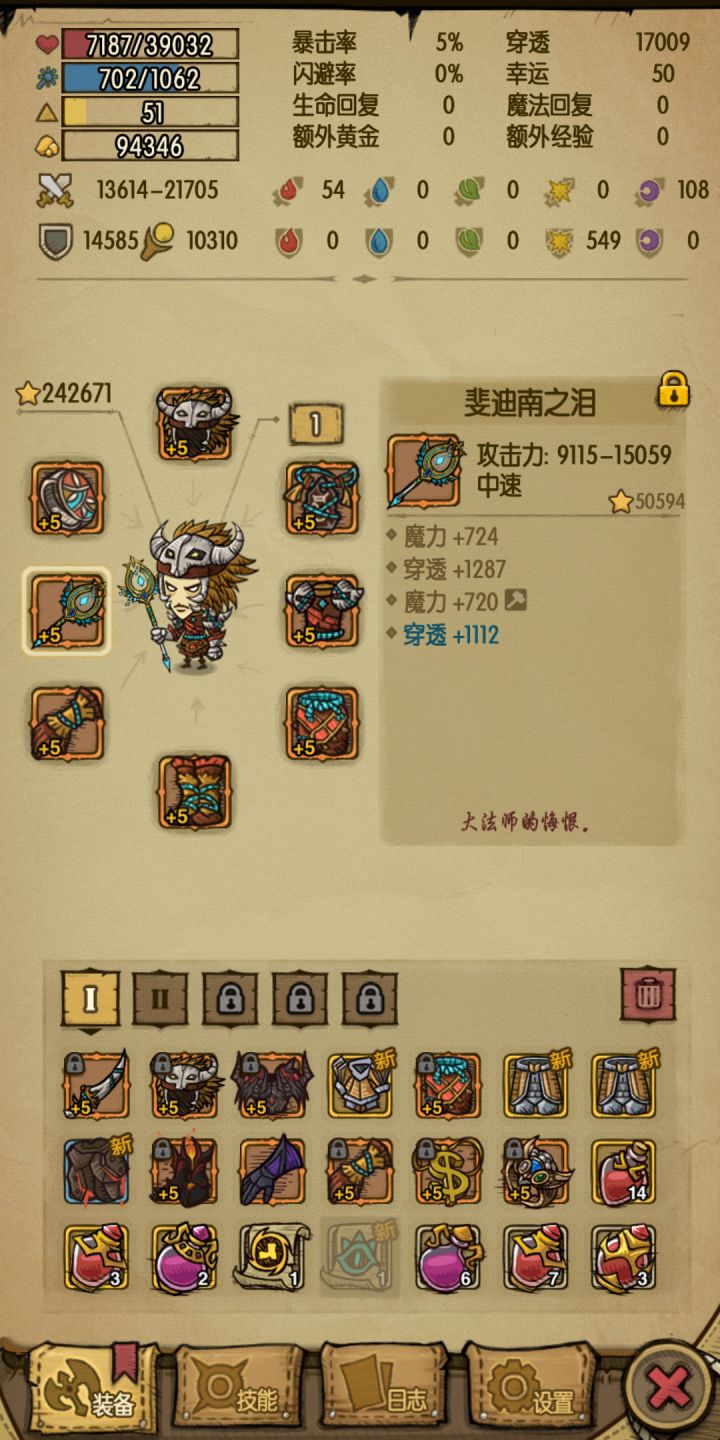 装备的确发了点时间去刷,但是很值得,可以直接从炼狱1层刷到炼狱80杀死雷神。双魔力穿透装。技能加点如图