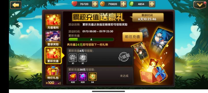 今天新开的服我充了104元,为啥累计充值就显示我充了6块。