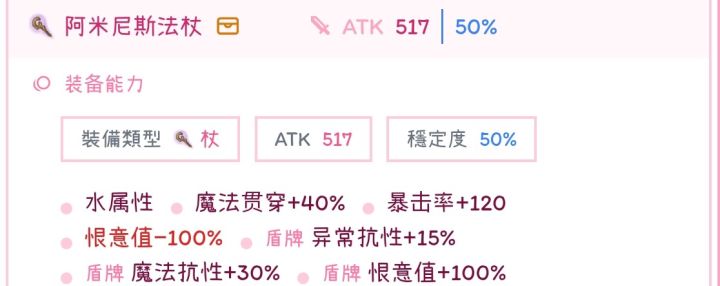 主贴:武器:阿米尼斯法杖(王掉)120暴击,40法贯,唯一选择,目前没有替代段晶选择:单孔:寄生/迪亚克迪亚克为寄生的强化,不过性价比不高,有能力可以用二孔选择:巴图德(面板,贯穿)奥克拉辛(面板,mp)黑衣圣诞公主(更多面板,减仇,封翻)盾牌选择:首选:怪点心魔法盾(活动)25暴击可以不吃料理达到250暴击,25%武器a的加成也不小非活动首选:恶爵的防御(铁匠铺版本)7