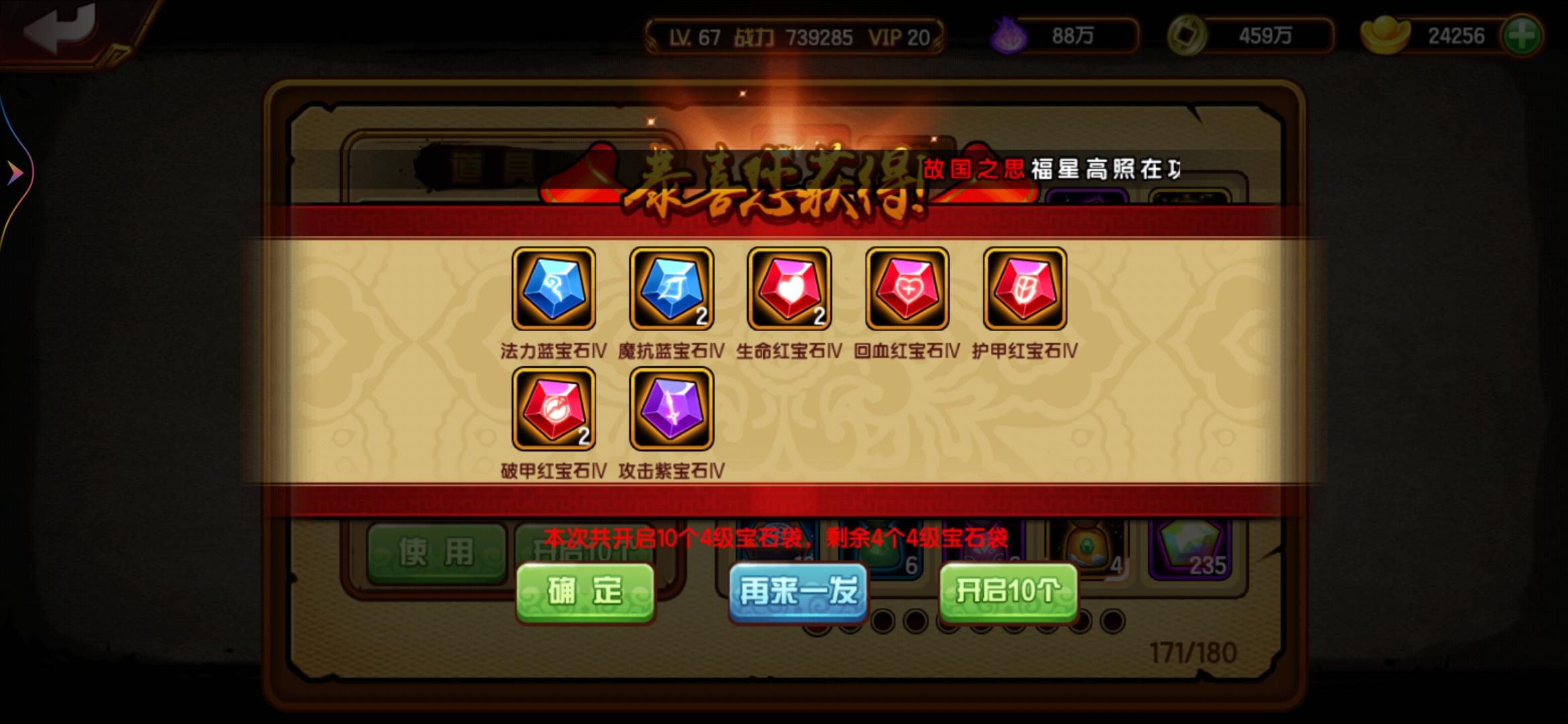 这就是氦金玩家现状吗?转盘不出贪狼,强化一直失败,宝石全给垃圾,神摩只给四强?常记我给你多吃了500不说什么,你宝石还吃我500?以前一次宝石出一颗我也就忍了,这次什么意思?觉得充钱多好压榨???逼着我不要充,慢慢嫖是吗?