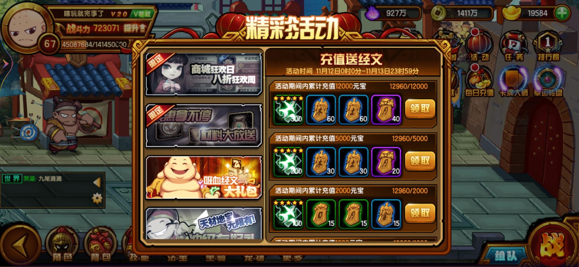 ①希望增加经文备战功能可以将9个技能佩戴的经文提前设置好,当需要更换技能的时候,只需更换经文页即可。考虑收益,可以将其增加到vip特权里②教官分阶许多人反馈学员经常在低战时进入高级关卡,这样会让许多教官为难。但如果让教官提前看到学员进入的关卡,会出现部分关卡(蝙蝠窟、雷巫)没有人带的情况。所以希望对教官进行分阶,通关琉璃宫,成为1阶初级教官,可匹配火、土10关通关雷鸟巢并成为1阶高级