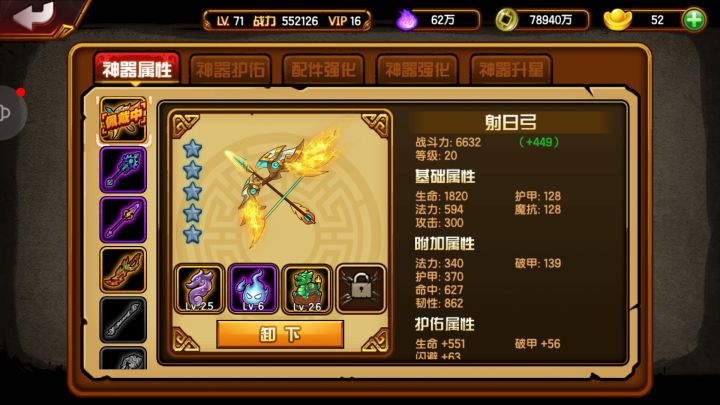 平民玩家考虑竞技场买的紫色神器(8000龙币),有些肝帝活动会出射日弓和化血神刀