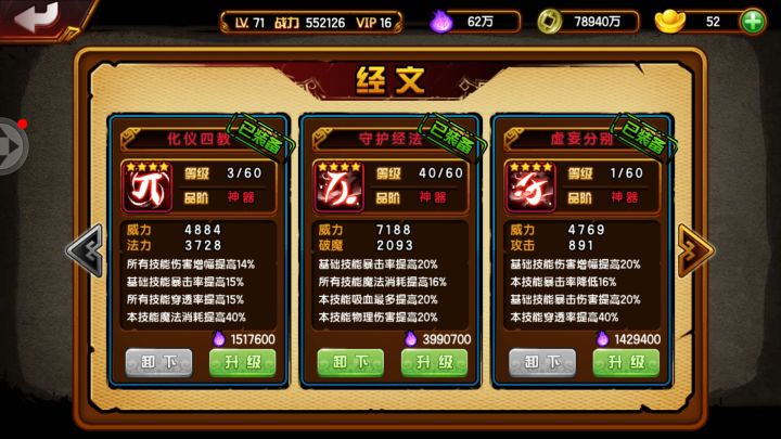 进阶技能:十无,真唯,戒杀(缺命中可以用万劫,氪金玩家考虑常寂)