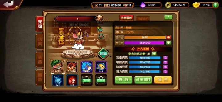 氪金玩家考虑橙色宠物,毕竟属性肯定比紫宠好,加的战力也是最多