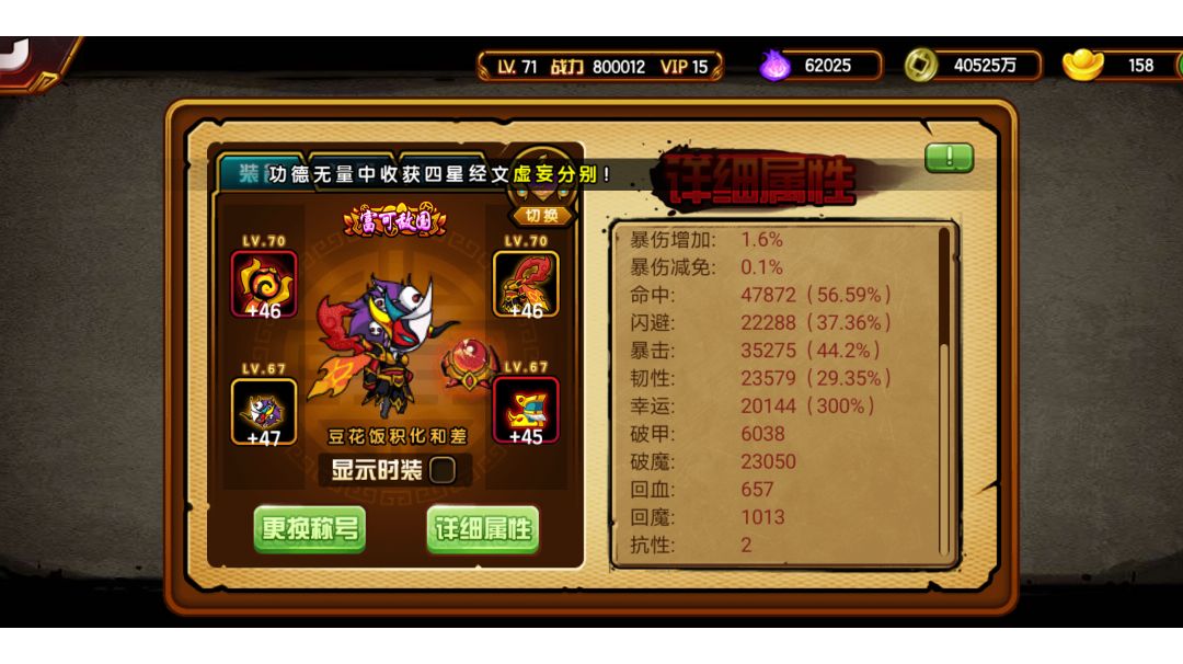 刷图属性:命中,攻击,破甲,暴击,幸运,破魔