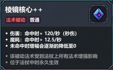 Hihi,这里是沉迷《魔法工艺》的曲奇spritumn。通用的法术被动里具有唯三具有伤害都设计得蛮有趣的,之前已经聊过了其二「奥术屏障」和「符文战锤」,这次来聊最后一个「棱镜核心」,分享一下「棱镜核心」的 一些玩法思路吧。不得不说这三个都挺极端的,「奥术屏障」大量消耗魔法值,「符文战锤」完全不消耗魔法值,而「棱镜核心」也是大量消耗魔法值那一挂的,只不过它不是一下子消耗,而是循序渐进的。「棱镜核心