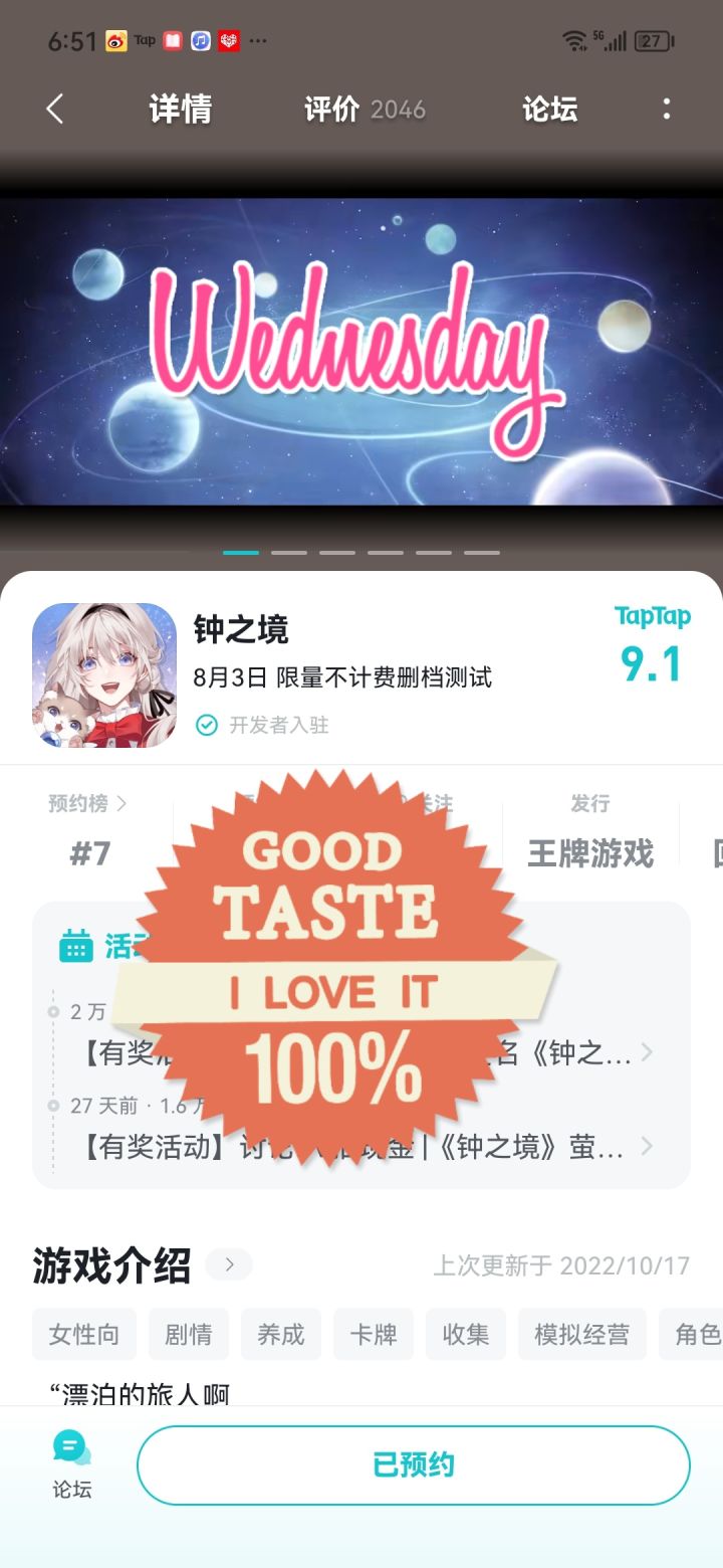 王女殿下,快快把你的二创作品交出来吧~克劳克的奇幻妙想二创征集活动正式开始!▌活动时间投稿时间:2023.07.27 至 2023.08.17评选时间:2023.08.18 至 2023.08.24奖项公布:2023.08.25▌参与方式围绕《钟之境》进行同人创作,作品形式包括但不限于同人绘画、条漫漫画、表情包、视频剪辑等。作品主题、风格不限,需为原创稿件。1.TapTap投稿方式: