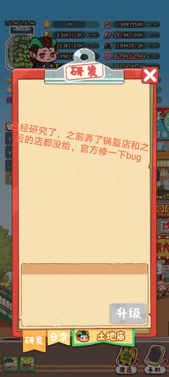 切换两个wifi,排除网络问题; 玩了其他游戏不卡顿,排除手机问题; 问题应该是出在服务器优化上了。 很卡顿,非常卡,几乎每次操作都有延迟,希望这点能改一下。 期待游戏正式上线!#烟火食记 #我的游戏日记vol7
