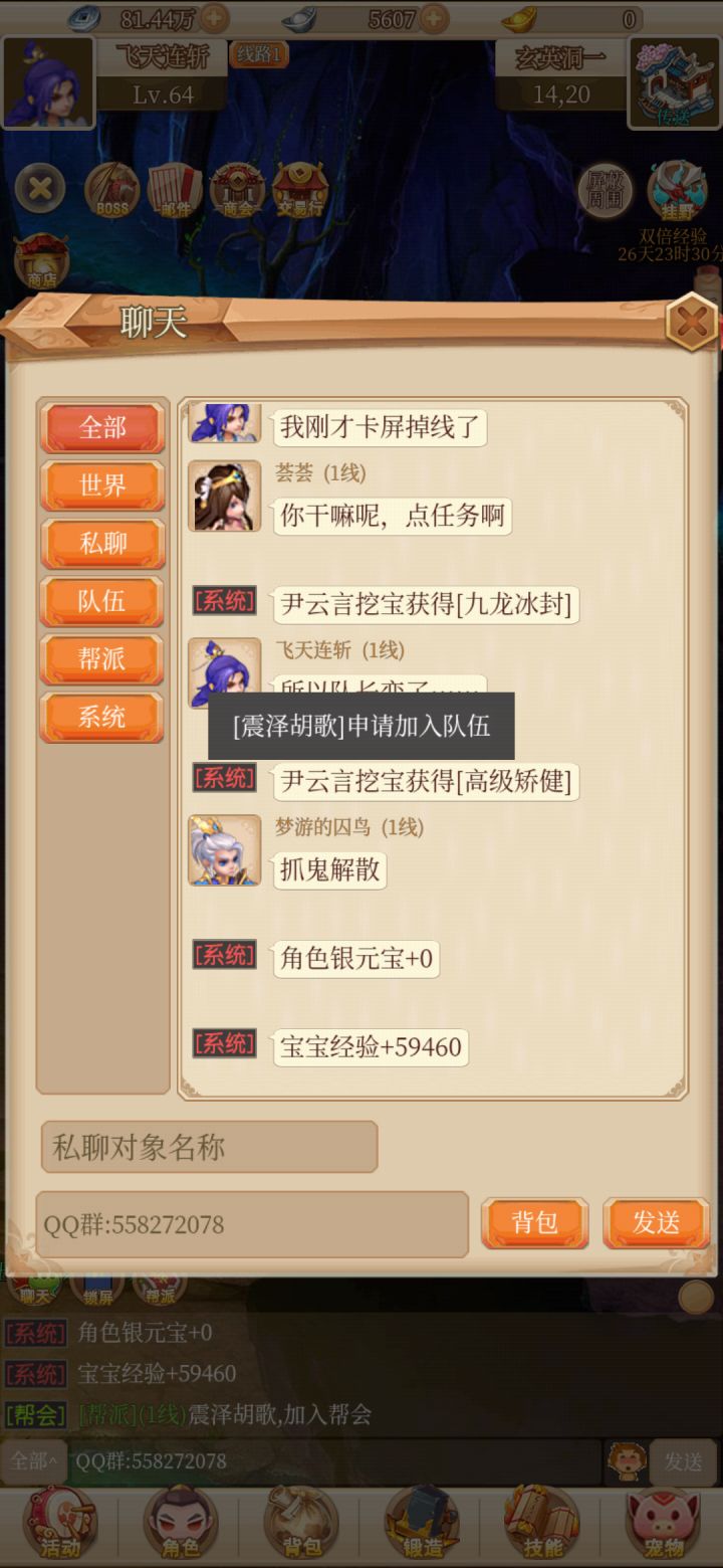 一边带队抓鬼,一边聊天,然后在聊天界面屏幕突然抖动,不能进行任何操作,重新上线后队长变为其他人……,我再次组队,再次卡屏在下边界面这里屏幕上下不停抖动,截图是静态的一帧,所以看不出来抖动……遇到这种情况只能退出重进