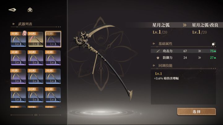 伊蕾什安角色攻略——专武与古痕在伊蕾什安攻略的角色设定与技能这一篇里介绍了伊蕾的人物设定与技能,在本篇,将以她的专武和古痕装配为重点,分析如何根据伊蕾的特性,将其武装起来。一、收割型美少女的专属武器都说颜色越粉,打人越狠,在巴别图书馆里,拥有这样镰刀型专属武器的就是一位粉色头发的少女——伊蕾什安。我们接下来要介绍的就是伊蕾的专武——星月/碎月之弧,还有专武的同调。1.星月之弧伊蕾初始武器
