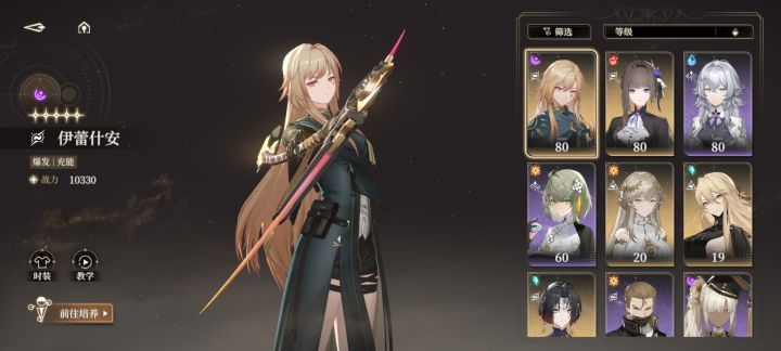 开服那会我就看上了她,并且只养她(但古痕和潜能还没搭配好)但是tm伊蕾是真难抽啊,3次保底歪了3次,我甘妮良