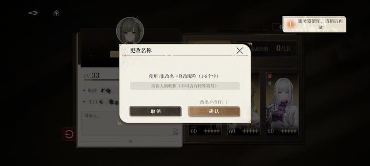 无法修改单字昵称,总是显示服务器繁忙,多于一字的昵称倒是可以成功?我就问难道1-8字的意思是不包括一字?#黑色信标 #黑色信标公测