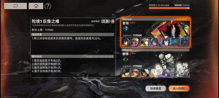 ——上半——机制:从上到下3个小怪分别是每回合给boss+5%的攻击/效果抵抗/减伤,上限三层boss每打三下(或者两下记不清了,不重要)单体攻击会放一次群体攻击。优先攻击我方2号位角色————角色选择:输出:3阶40级左右,红卡带30级左右。【推荐龙井】援护盾:2阶40级或3阶1级左右(看突破机制是否重要),前两位卡带凑套装,后两位黄色卡带30级左右。【例如巫/银峰】(例外:甘霖,