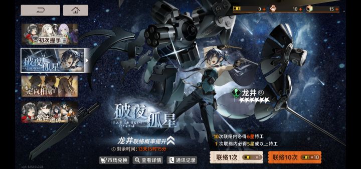 先是新手30发连金音希+巫然后定向选月白十连歪了恒砂,吃满月白然后然后40发小保底没歪龙井,今天早上再下十连又出了一个结今天才玩第二天,感觉就是对我最友好的抽卡游戏#新月同行