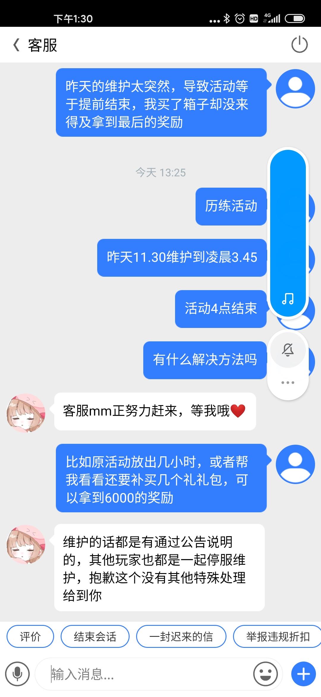 游戏玩了半个月,今天准备弃游了昨天的游历活动,我本来是准备拿满6000积分的,奈何事情太多,一直到深夜才开始弄,后来发现晚上要维护,没辙,只能订了一个3.30预计维护时间结束的闹钟,但维护延后了,说是3.45结束。我最终没来得及拿到6000积分,4点活动准时就消失了。很不爽也很不甘,今天找客服也没得到满意的答复。心累了,走了,祝大家游戏愉快。