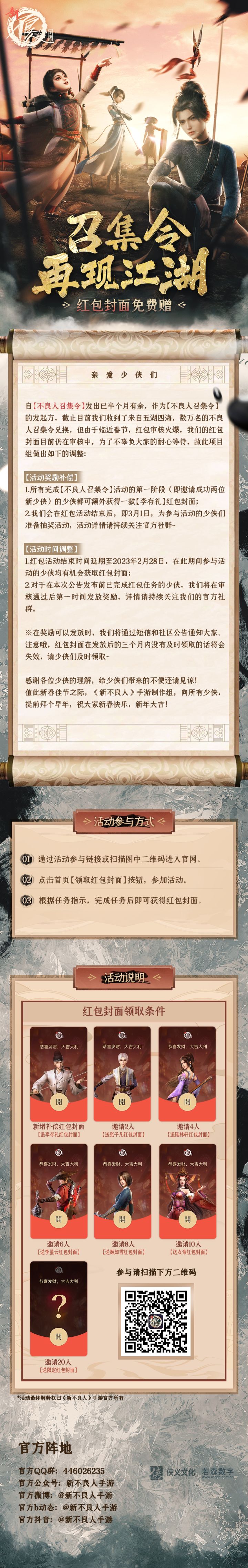 不良人召集令活动火热进行中,白嫖限定红包封面和iPhone14大奖,【活动传送门】https://xblr.xiayixing.com/?channel=8.1