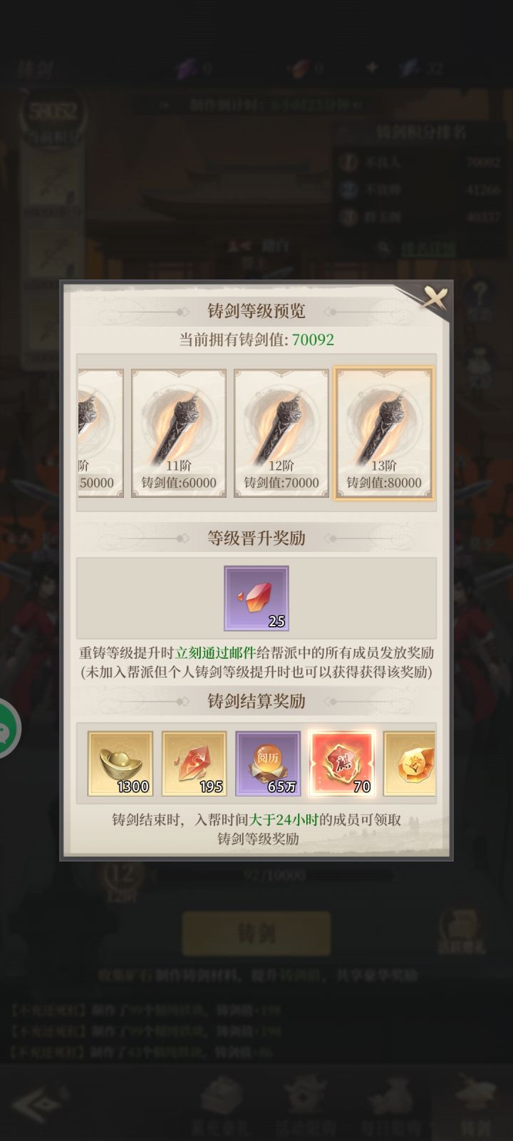 铸剑活动 我们干到 12 级后 又出来了 13级 我问问大神们 13 级后面还有吗 有的话有啥奖励贴个图呗