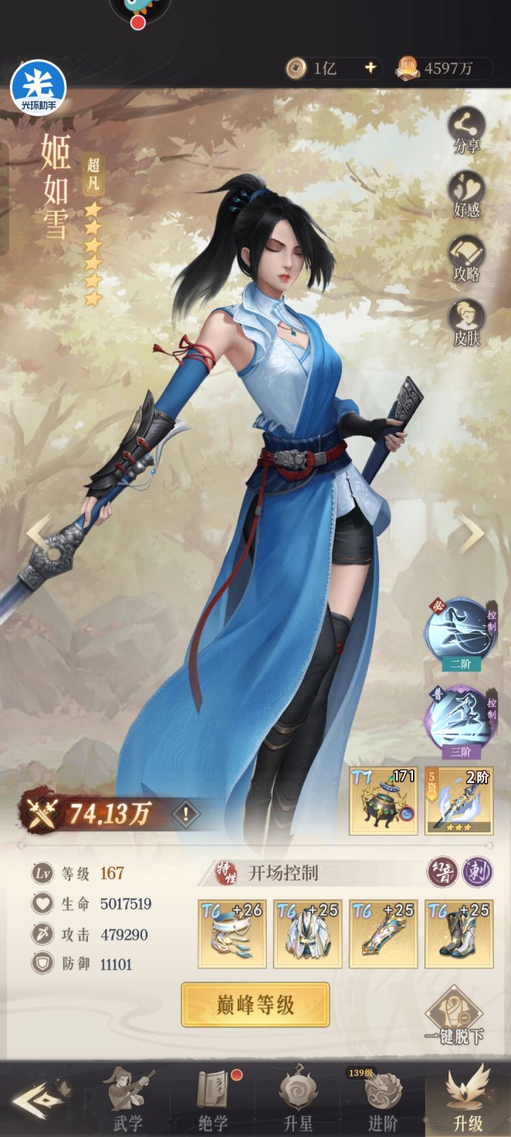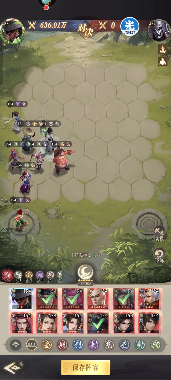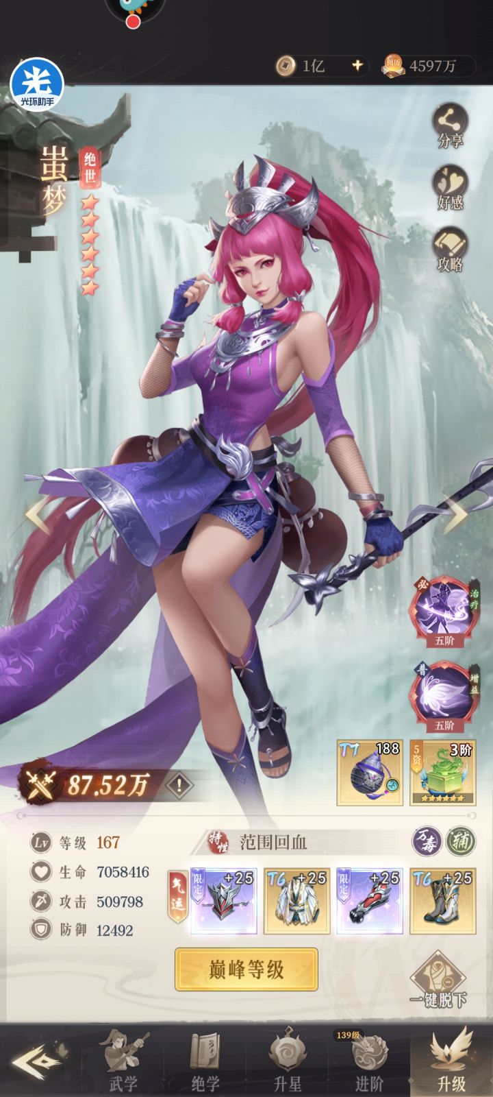 演武换个转职老六又起飞了,阵容小小改动一下,目前还再推,胖子和雪儿还在养,效果比五辅好的多,pk也比五辅历害。。哎,又多走了弯路演武转职终身限够一次,换的时候考虑清楚,我这个只做参考
