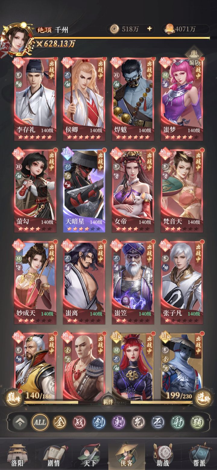 六巫,两公主(侯卿,降臣,蚩笠,蚩离,倾城,倾国)大贺枫,孟婆,李克用,巴戈四选二,哪个星高上哪个,过度很平滑,暗养李存礼,后期有巫玉后,下其中一个巫,李存礼放候补位了(八号位),倾城因为是刺客,会直接跳对方后排。大概率第一个死,老六会直接上场在倾城死的位置,直接切后排,目前具体站位看图,前期侯卿主c,蚩笠副c,第三个养倾国,我的倾国一个人能顶住对面气宗七个人