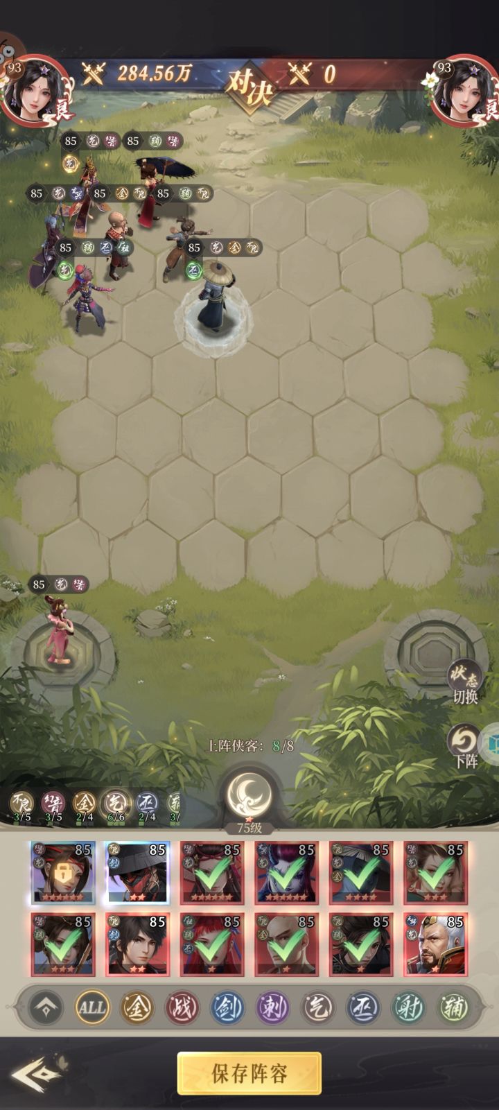气宗过主线61-10要点1,站位如图2,子凡有条件就带普攻减内力的,用2绝3,存礼带1绝,但是不要上橙4,防止触发失心疯