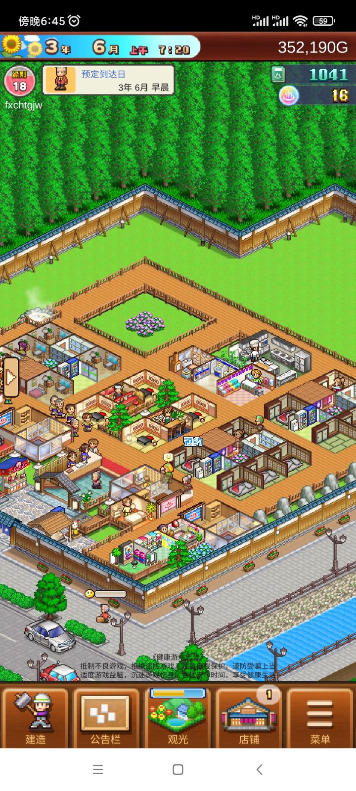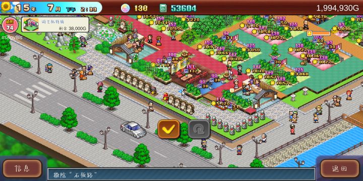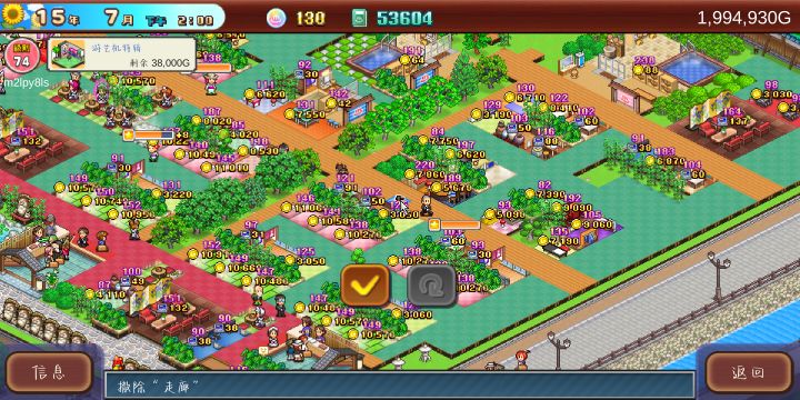 前期按照这个布局,到温泉出来以后基本上能满足招待,南瓜商店前期能买的道具都买,景观建筑除了松树以外都可以买,其他建筑可以等钱多了再购入。一般游客来了,找个微笑高的接待,然后等他自己去一趟食堂、便利店、弹珠机、温泉,基本上需求就满了。