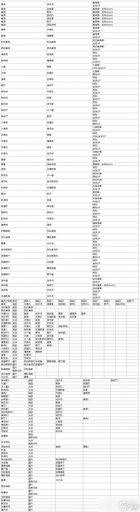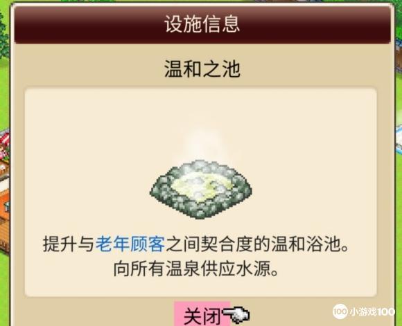 目前尚未通关,一边摸索一边玩,有什么问题欢迎一起交流呀~一、契合度词典补充1.点心店+网吧 年轻、中年顾客上升2.读书室+网吧 年轻顾客上升二、温泉功效白嫩之池、灵感之池挖掘土地就可以获得,不需要用设施堆砌,挖掘后每个温泉池都有三、契合度1.客房包括西式、和式两种,契合度词典中部分搭配中的“客房”指两者都可以2.由于翻译问题,推理室=占星/占卜室四、景色/人气1.人气由景色、设