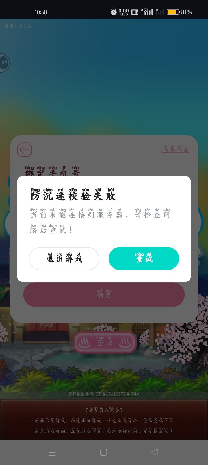 防沉迷检验失败?