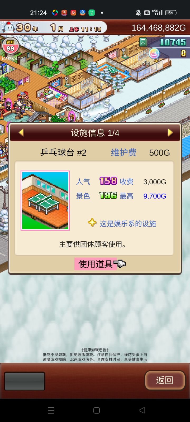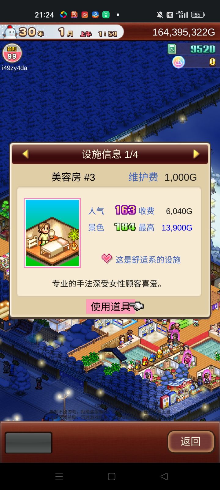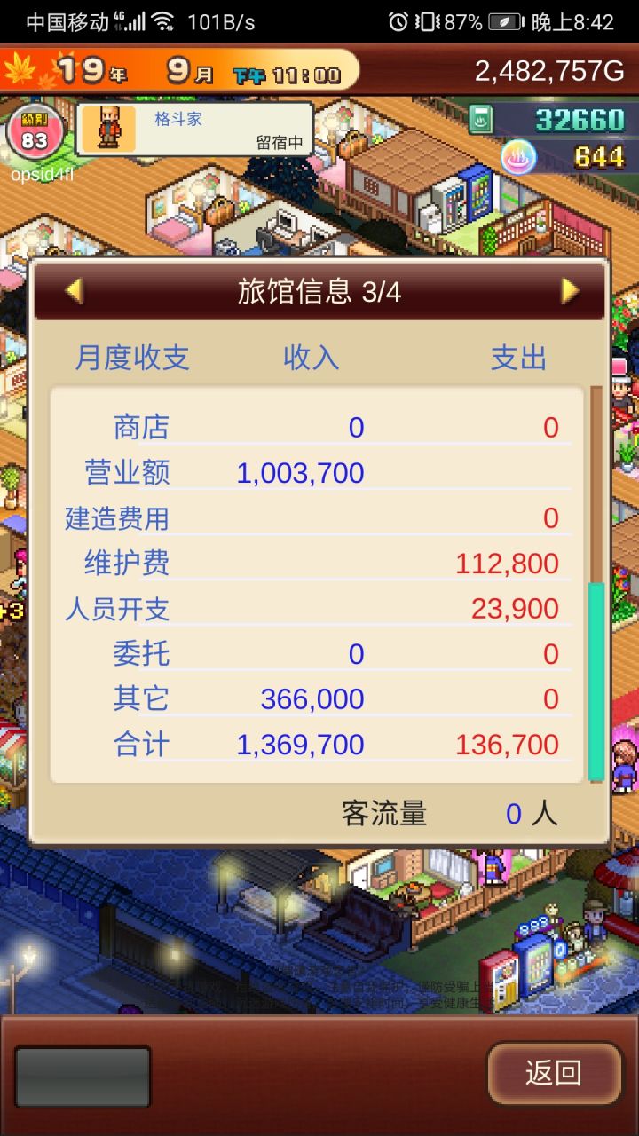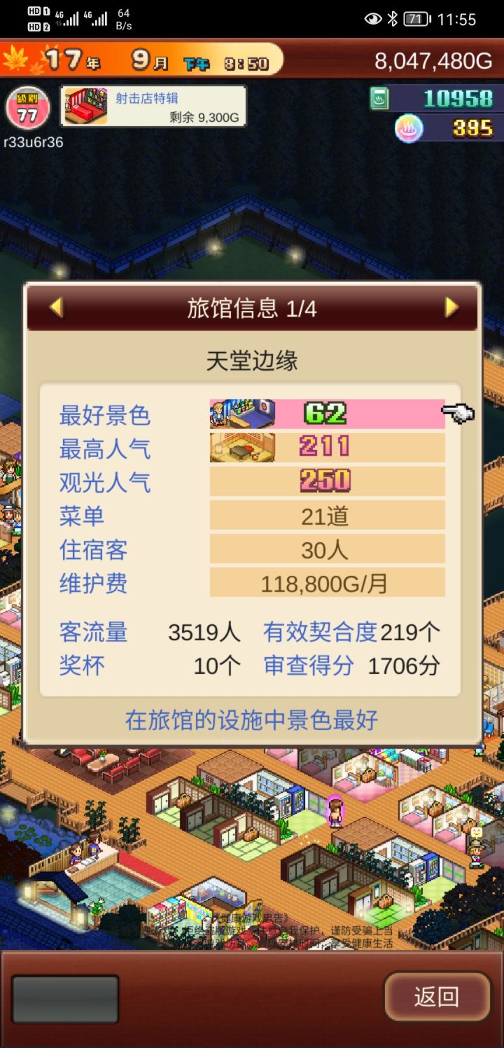 参加温泉旅馆活动(不知道能不能拿个奖)我目前收入是一月250.000.000+左右 挑战也是挂机就能过,自动提款机我都弄了五个了,才够他们消费。