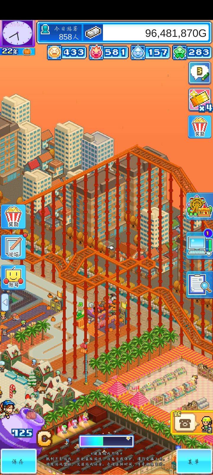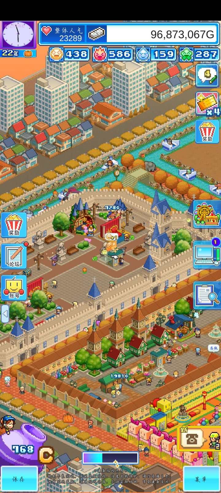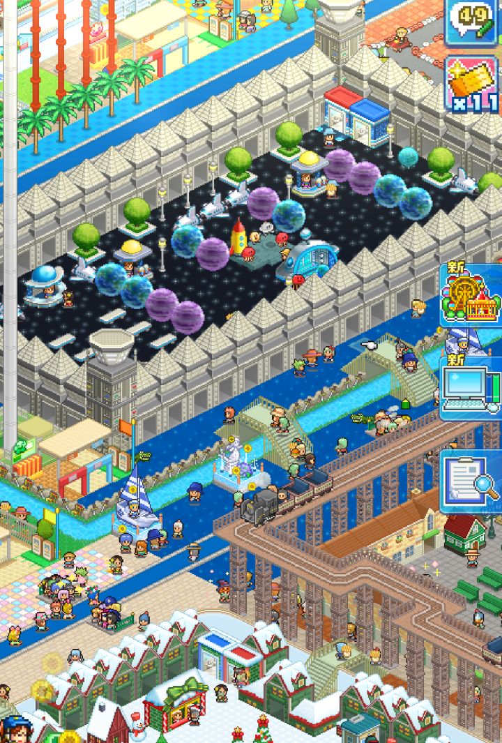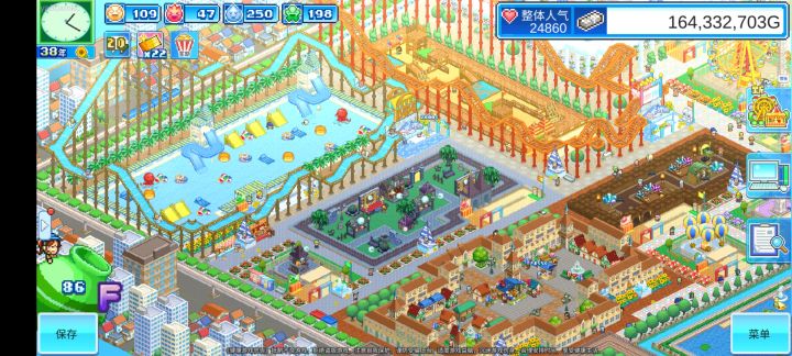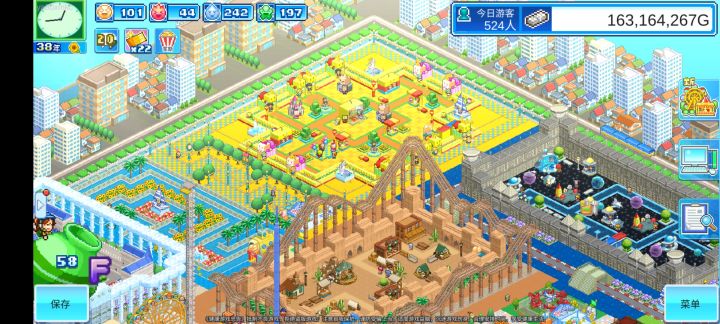 基本改完,还有各个区域的地板颜色,绿植填充,小商店等等细节没搞定,区域都没办法拉到多大,弄的很多游乐设施很挤😭只能克制着来了,最遗憾的是巡游,地方小,没办法绕场一周了,只能稍微转一圈,还有水上项目,最后实在没地方弄了,基本挤在一起了