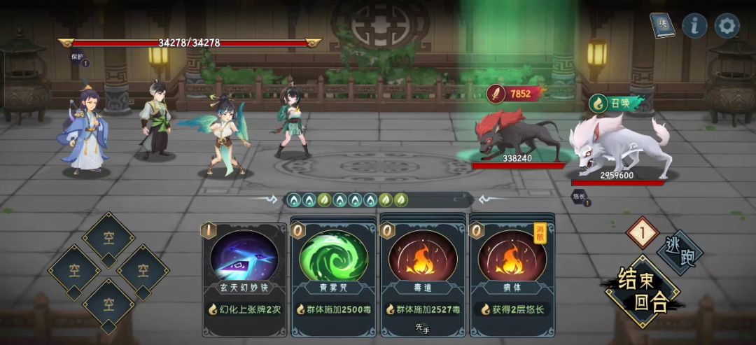 阵容如图,参考了大佬的配队 1.装备三件悠长庐衣,之前最多见了四次,视频这次就见到两次所以比较低。 2.我的主角和青青带的法武器。焉和真真带了清毒(好像没啥用,真真还是带法吧) 按法强:主角(磕丹+起手)>青青(起手)>真真 3.饰品,主角姣心佩,青青带只能触发一次的威毒项链,还有个金葫芦和毒葫芦。 思路如下, 第一回合先看青青是不是玄天符,不是就可以重开了[表情_吃瓜][表情_吃瓜][表情_吃瓜]