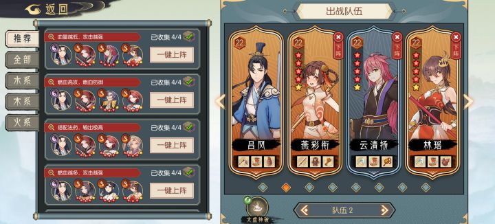 前面两个基本固定,还打不过元芙就换笼嫣/宫连华试试。