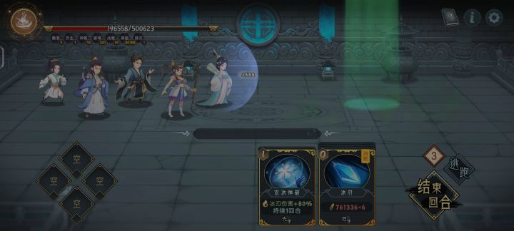 四层:选左边蜘蛛,右边不选,三尾会复活不好打,进去逛一圈可以看到就是蜘蛛赌路,不带解毒葫芦是40多万毒,带了四个解毒葫芦就是10万多,蛤蟆冰刃存2回合就可以秒过去,其他的随便打打。然后换血量装队伍,吃60%血量,不好意思我又50万血量了,打完我们还剩下30万血量,还有复活甲上五楼,还有金蓝绝杀。请不要选大树,因为大树会影响轮回断水的快感,打是能打,解毒葫芦2个,先天宝甲抗第一下真实