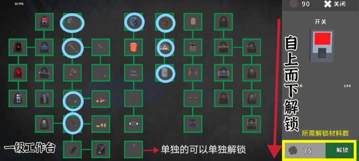 今天讲讲#工作台,游戏中三个等级,原本想着有工作台什么材料都可以造了,但并不是许多材料靠刷、捡和分解材料,后期介绍材料来源。所有解锁都需要废料,相当于游戏中的钱,交易也需要,所有能收集就收集解锁需自上而下,单独的可以单独解锁,不需要全部都去解锁,太花费时间了,解锁常用的即可,其余的可以通过刷和捡得到。推荐一级工作台:斧子稿子要,生产提升起来;枪也可解锁,散弹枪贴近打,一