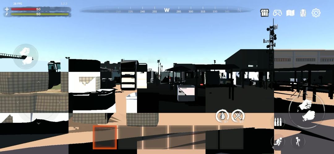 退出菜单再进来放在在尖刺木头附近的墙都消失了,后面这个混泥土路障拿在手上什么也看不到放不了