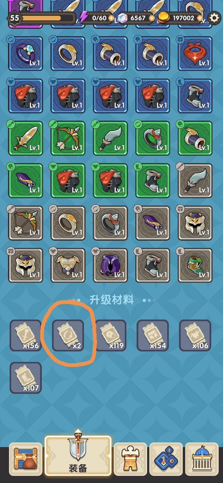 这次是升级bug,首先,我每个装备都有25级,其次,我每个装备都是紫+1,然后,我的升级材料都有100+