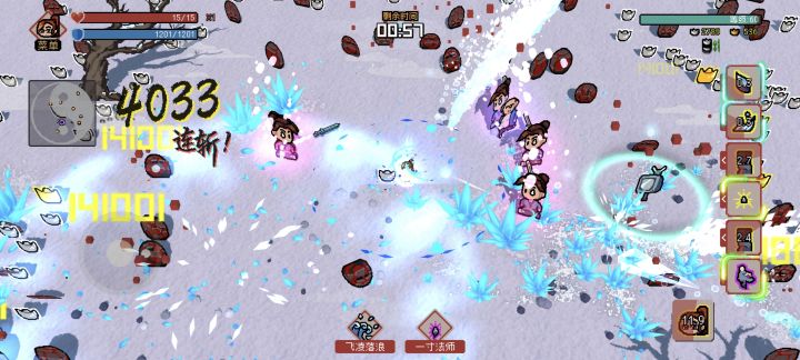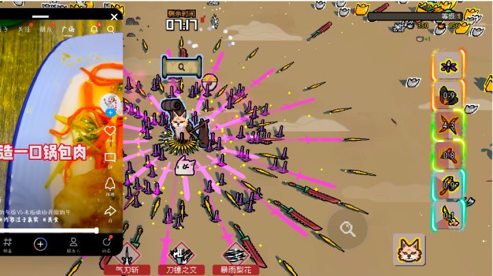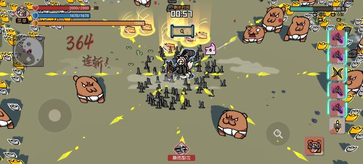 无尽刷怪很快不能像普通模式慢慢运营,开始小鬼+聚宝盆刷钱,兔子组合快速刷金矿和银矿顺便用被动献祭增加基础属性,在加上锤子+飞刀增加生存率,顺便打输出冷却快,没事就看看货郎里面有没有蓝色、紫色的技能,3-4波左右就可以把兔子组合通过货郎换掉,最好是紫色技能,就可以换陨石+喷火回血回盾,把锤子和飞刀升到蓝色或者紫色,现在不站桩生存拉满,矿提供的经济可以代替小鬼组合就换金色的梨花针,可以用来献祭提升基础