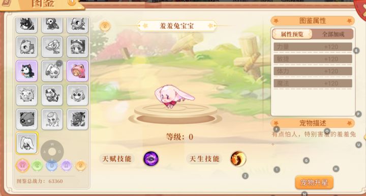 宠物系统宠物的战力,主要在于等级,亲密度,技能,觉醒,以及阵法,有资源就往主宠物身上砸。宠物不仅只是游戏中陪伴你的角色,他也是你前期重要的战力之一,是你并肩的战友。当我们获取到属于自己的宠物宝贝后,就可以给他们进行培养。我们除了可以通过提升宠物等级增加战力,还可以养成宠物和玩家间的亲密度,宠物亲密度越高,技能加成越高,并且还可以提升我们的战力的噢! 宠物觉醒宠物提升战力方面很多,今天小布来给