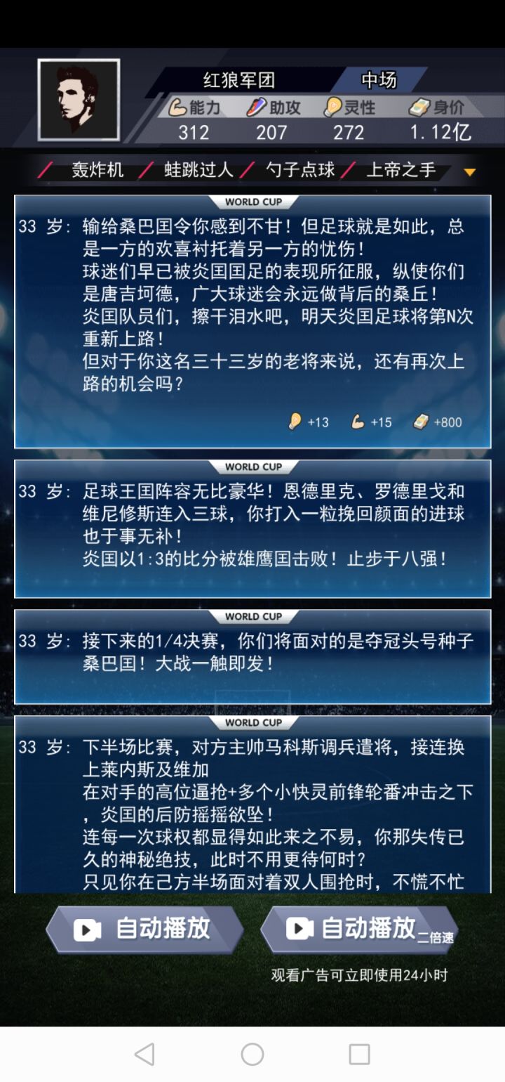 这都才16强,世界杯就没八强过(天赋:外星人,桑巴舞,猎豹,魔术师,精准预判,绝对死角,广告给三肺)。