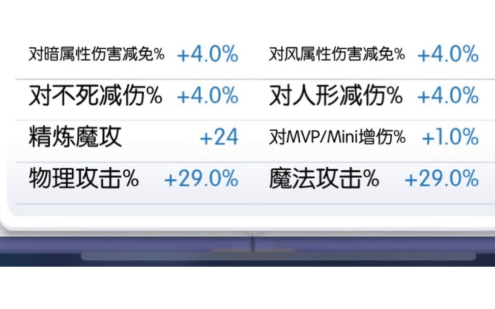 本篇内容仅针对PVP生效,不玩PVP的玩家建议跳过1-PVP额外防御%上限额外物防%与魔防%的有效范围皆为-100%~100%即面板防御%大于100%部分无效已验证:攻方不变,守方通过存入和史丁星卡调整额外魔防为110%,112%,122%时,伤害不变注意异常状态或DEBUFF会减少面板防御%2-PVP防御%补正在1的基础上,系统在计算伤害时会为玩家增加固定的20%防御,及基于当前防