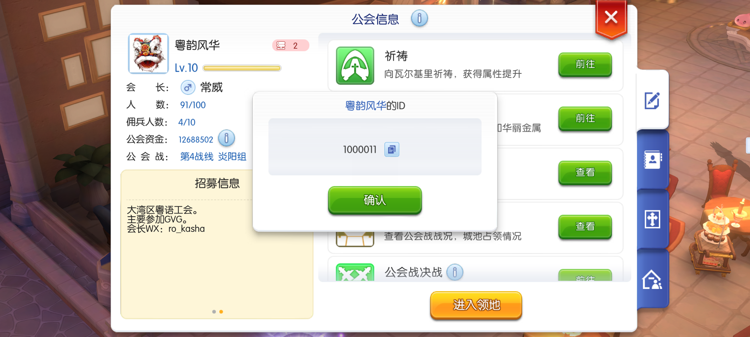 欢迎各位玩家及小团队加入 每周协助过各种副本打造一个纯正粤语工会 粤韵风华,同声同气 主会招募激情GVG玩家 分会招募 养老玩家(小号)有兴趣加我wx:ro_kasha #仙境传说ro守护永恒的爱