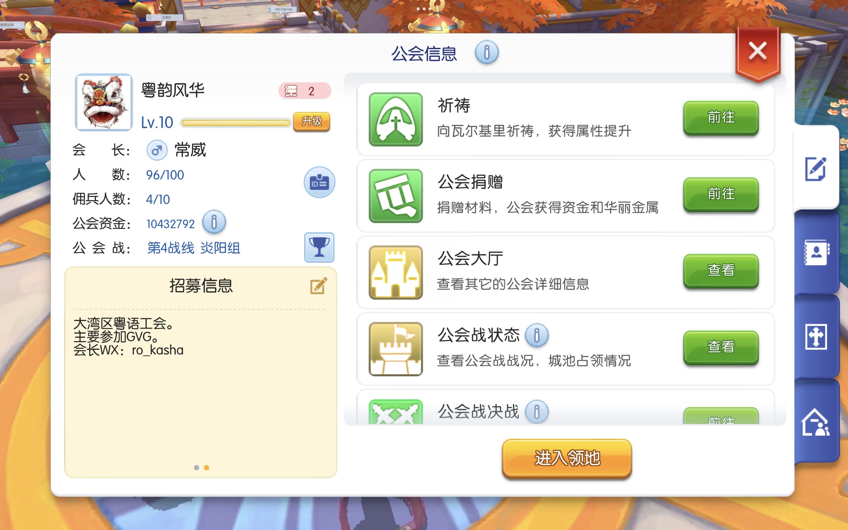 [粤韵风华]游戏公会招募贴 一进来就看到常威在打来福。 以下是我们的招募详情: [公会优势] 1. 团结互助:公会成员之间相互支持,共同进步,一起克服游戏中的难关,提升会长体验游戏乐趣。 2. 拒绝内卷:没有强制的KPI,只要求参加工会战并赢。 3. 技术交流:公会成员可分享游戏心得、战术技巧等,提升会长游戏水平。 4. 专业吃瓜:有专门的情报机构,可以洞察游戏上的一切,来满足会长