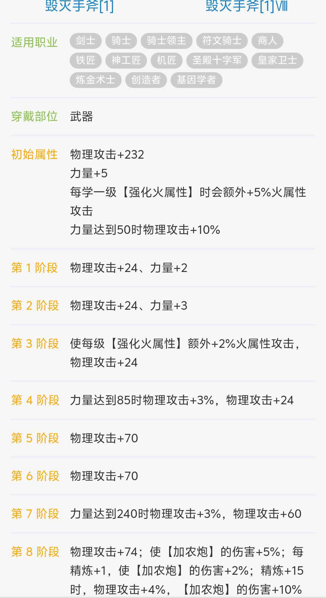 15衣服15火斧头和10火斧12衣服的在副本输出差距只在1%甚至12人时和诗人想比,输出没有诗人高提醒各位这个不是好玩的职业,早点换,炼金的武器衣服均不通用,初期开荒还行,有靠谱的公会和团队后早点跑路转职。别投入太多入坑了的人的血泪教训